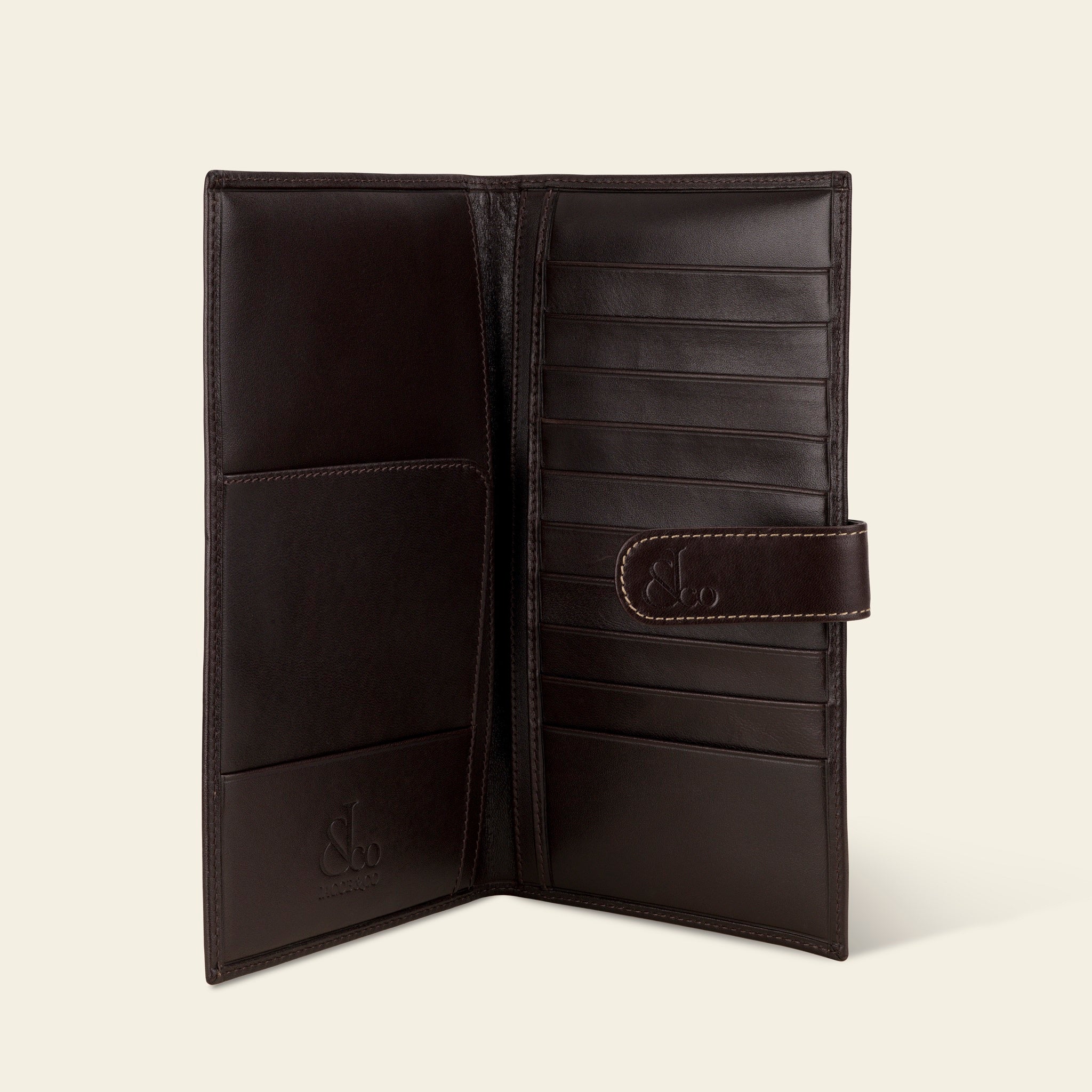 Jacob & Co. Large Wallet for Travel Documents with Beige Stitching on Dark Brown Leather